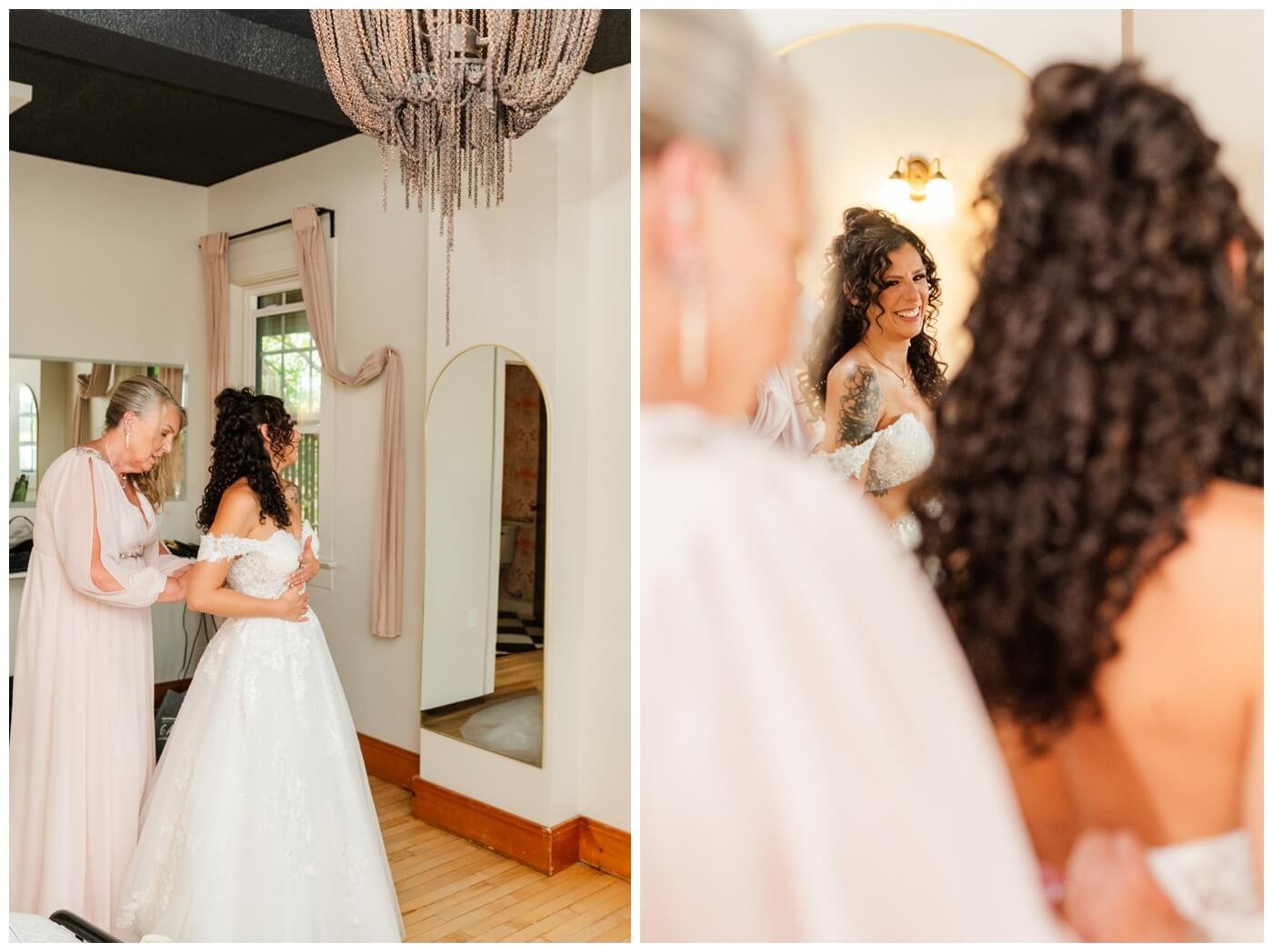 Both Blayde & Hanna were getting ready at The Station, and despite the shift in plans, excitement hummed through the rooms. Blayde described himself as nothing but excited, though it was clear he was carrying some nerves too—mostly about how his blue suit would look in the end. Hanna admitted to feeling a little nervous as well, but she radiated with anticipation. Watching them in those quiet getting-ready moments the morning of, it struck us how they had clearly chosen not to let the rain, the stress, or the changes in the plan cloud what this day was truly about. No matter what, by the end of this day, they were going to be married.
